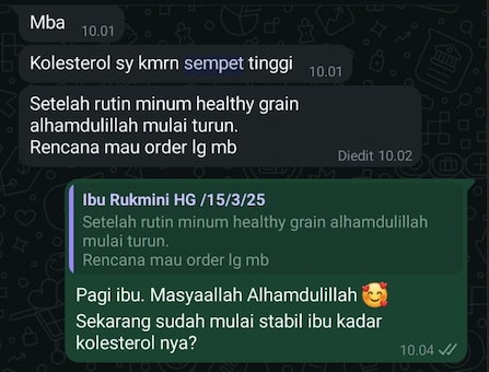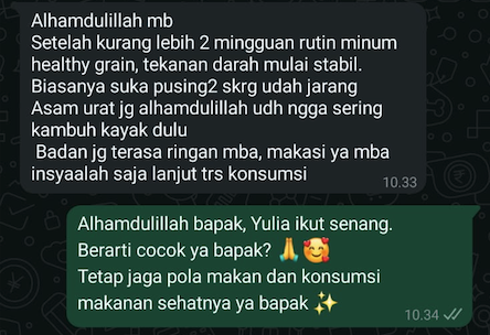 Dengan konsumsi rutin, HealthyGrain membantu menstabilkan tekanan darah, melindungi jantung, dan mencegah komplikasi berbahaya seperti stroke atau gagal ginjal.